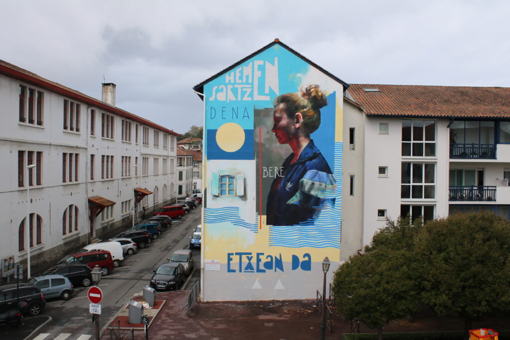 Instagram Instagram Denis Etcheverry karrika, 1764100 Baiona Hemen sartzen dena bere etxean da – 2017 Aitzinaldean letra larriz euskaraz margoturik: “Hemen sartzen dena bere etxean da”. Harrera-erranaldi hau eremu publikoan kokatzea hautatuz, Sebas Velasco eta Xabier Anunzibai artistek erran-moldearen etxeko erabilera tradizionala uzkaili dute, garrantzi politiko eta unibertsala emateko. Hemen, denak dira ongi etorriak —edozein […]