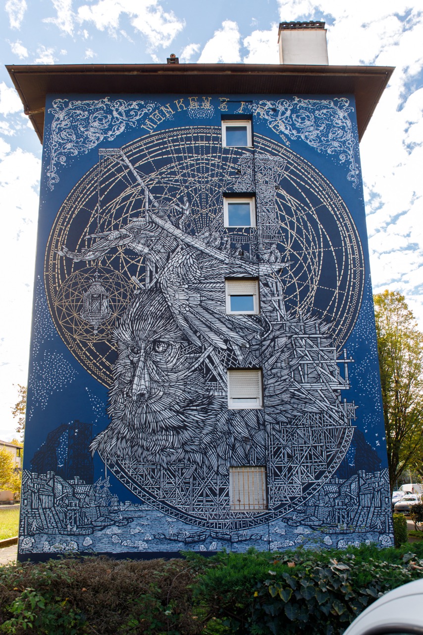MonkeyBird bikotea, Bordelen egoitza duen bikotea, zuri-beltzeko txantiloien fintasunagatik ezaguna, mundu bat sortzen du non figura hibridoek, motibo arkitektonikoek eta sinbolo kosmogonikoek gizateriaren denboran eta unibertsoan duen lekua zalantzan jartzen duten.